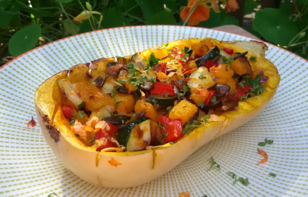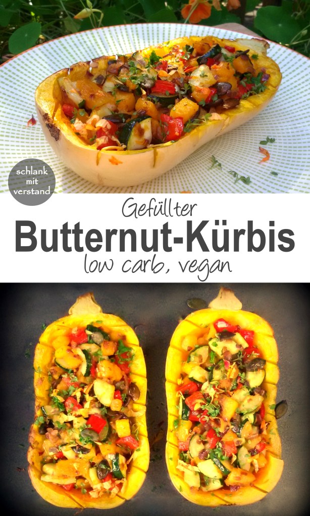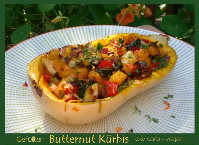 Rezept: Gefüllter Butternut Kürbis low carb vegan