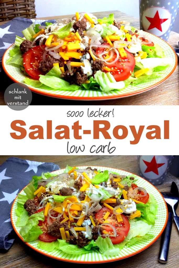 Heute wieder schlank, habe ich den Royal Salat kreiert. War auch ohne das pappige Brötchen lecker und wird es jetzt bestimmt öfter geben. Meinen leckeren Burger Salat – low carb kennt ihr ja vielleicht schon.