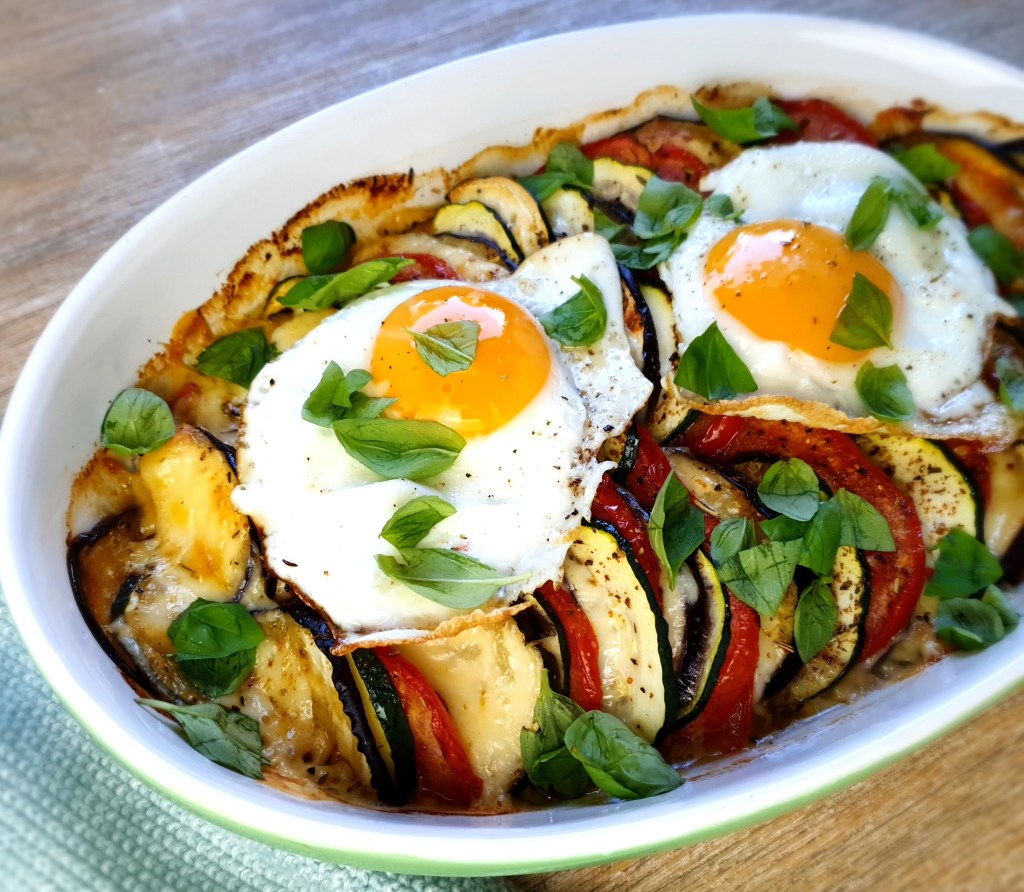 Mediterraner Gemüseauflauf mit Spiegelei