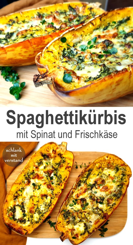 low carb Rezept: Spaghettikürbis mit Spinat und Frischkäse