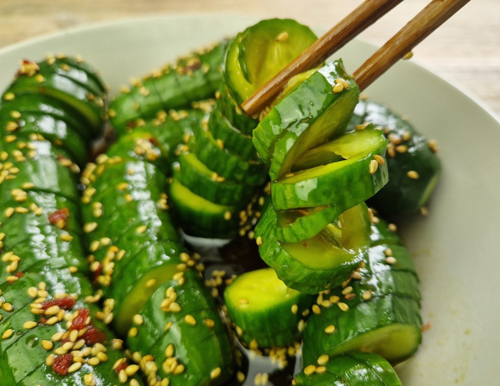 Kann ich den asiatischen Gurkensalat vorbereiten? Ja, du kannst ihn über Nacht im Kühlschrank aufbewahren. Dann schmeckt er sogar noch besser.